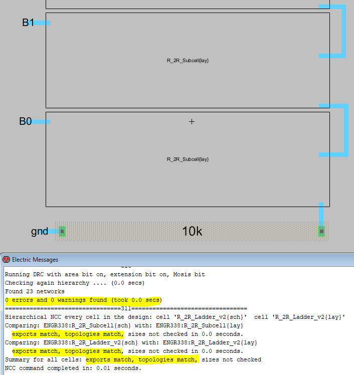 Figure 4. The bottom of R_2R_Ladder_V2{lay} with clean DRC and NCC scans