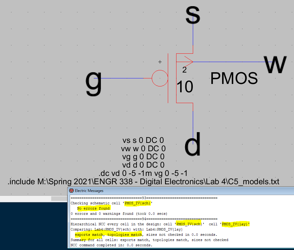 Lab 4 Report: PMOS and NMOS in ElectricVLSI