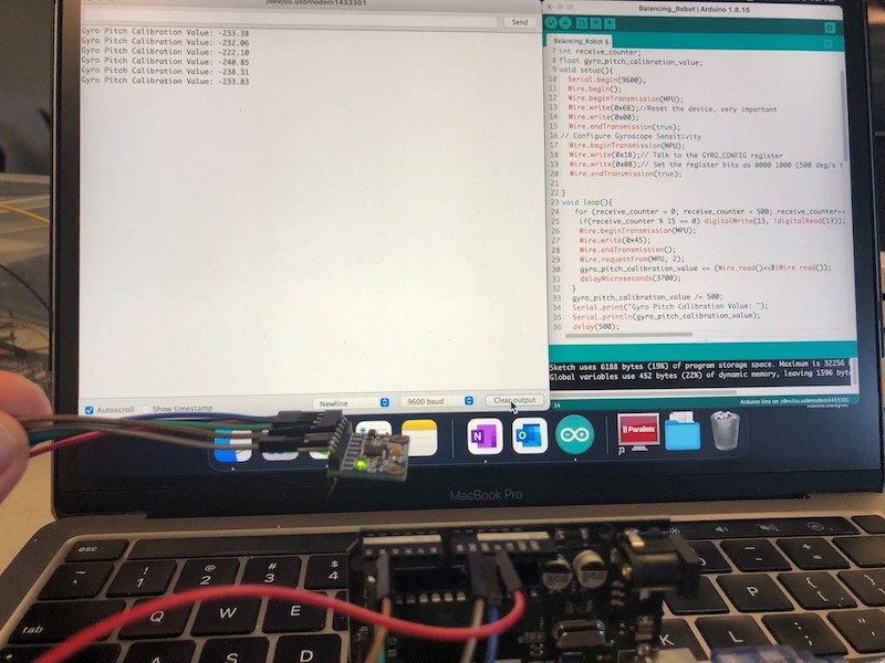 Figure 2. Reporting the averaged 'gyro_pitch_calibration_value' to the serial monitor.
