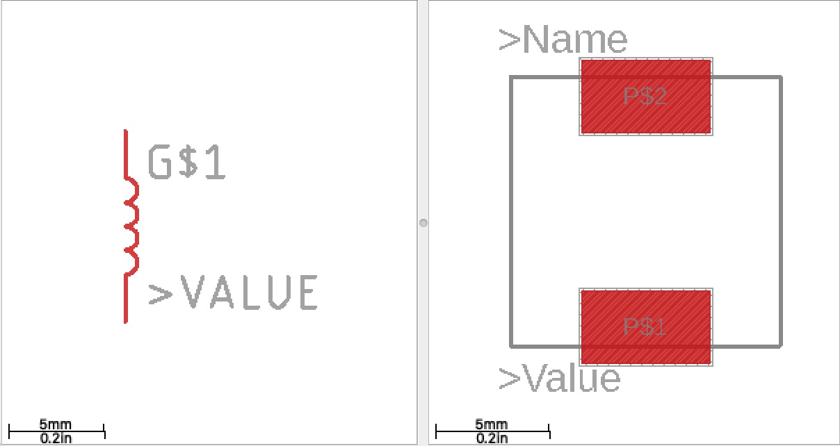 Footprint of created inductor device.