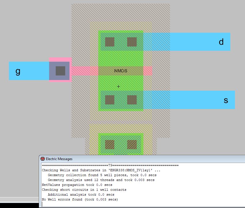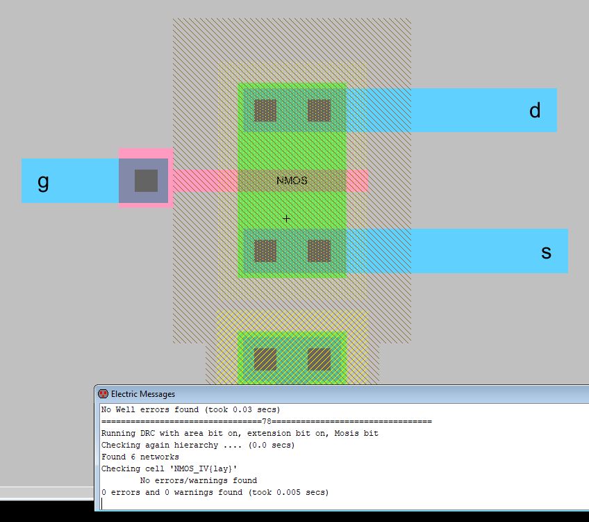 First we created a schematic of the NMOS 4, then went on to creating the layout(shown below)