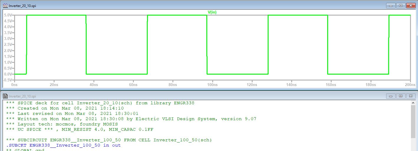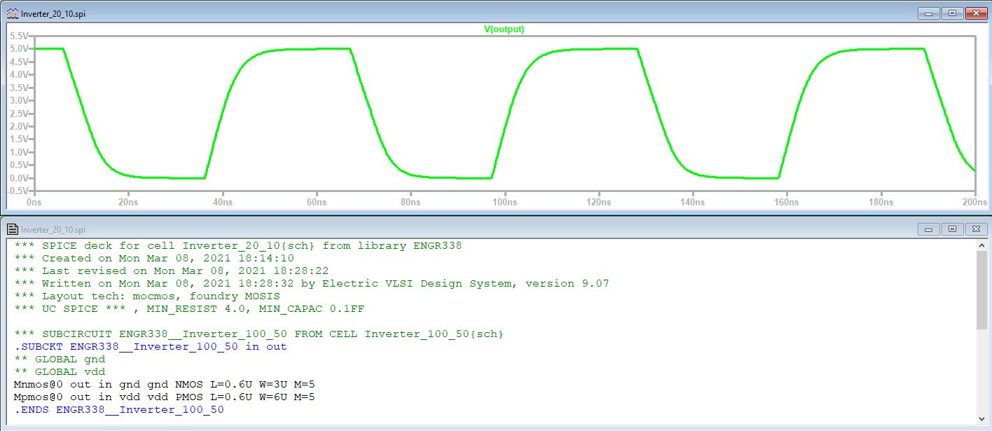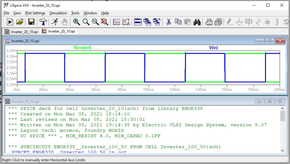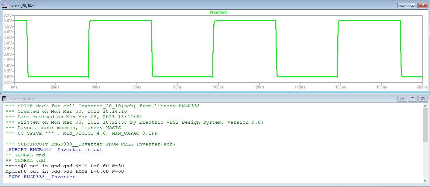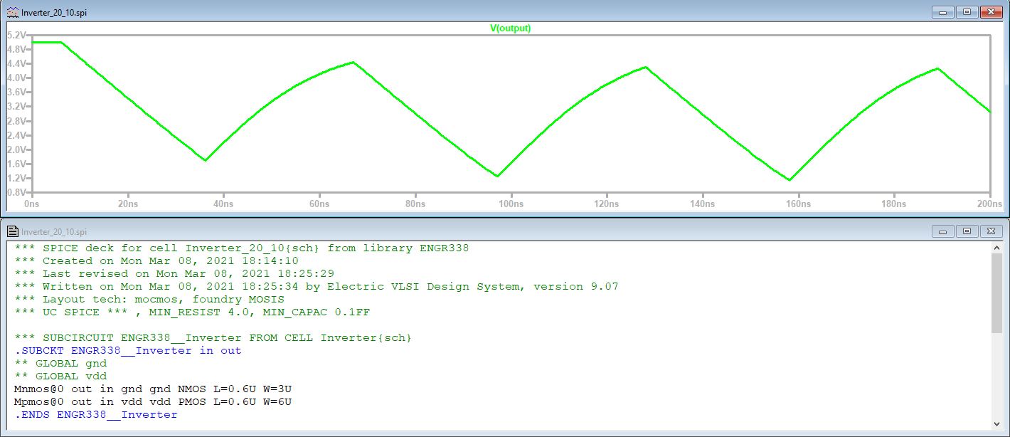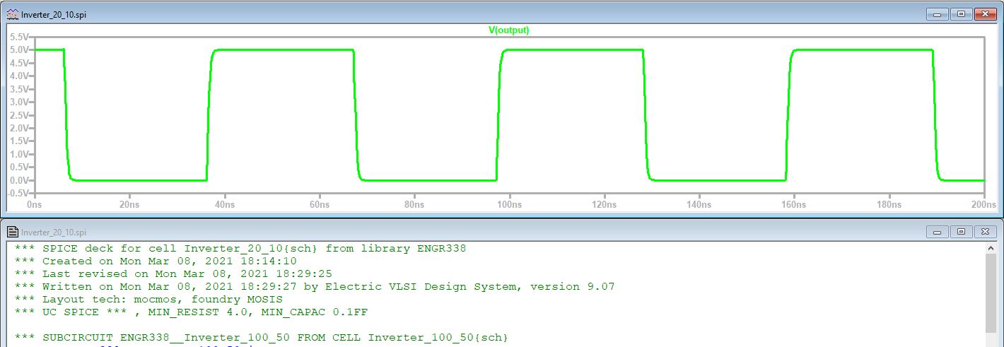 Figure 10: Simulation of 20 - 10 inverter using a 10pF cap
