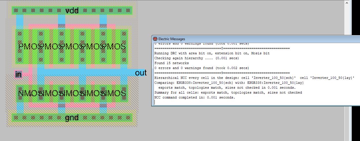 Figure 6: DRC clean for 100 - 50 inverter