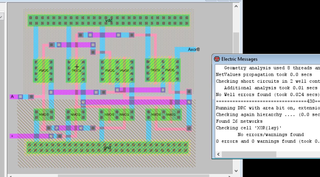 Figure 10: DRC and ERC clean for XOR gate layout