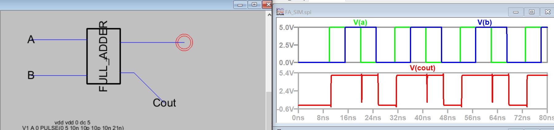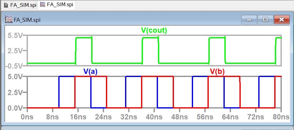 Figure 12: Simulation Results for Full Adder, note Cin was held low