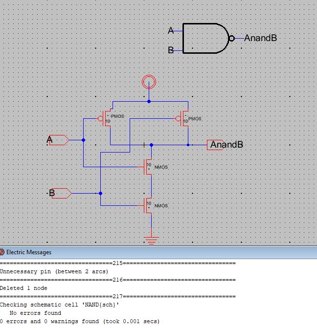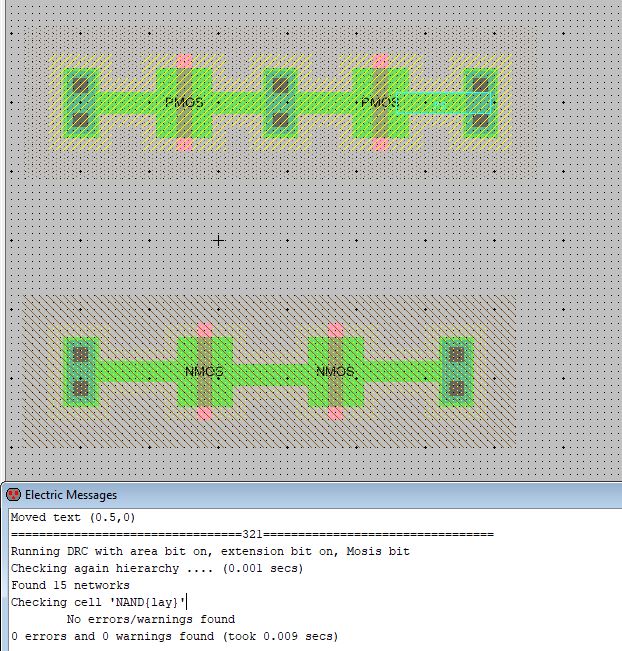 Figure 3: DRC clean of NAND gate, note that this was modified later to work better with full adder