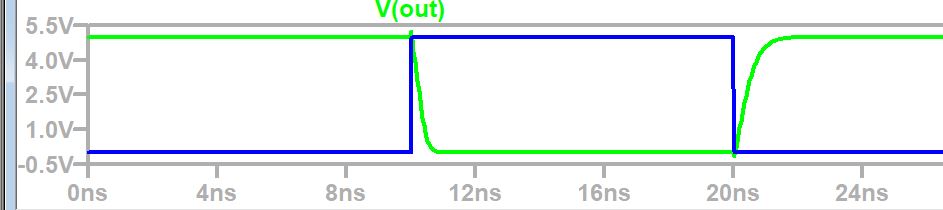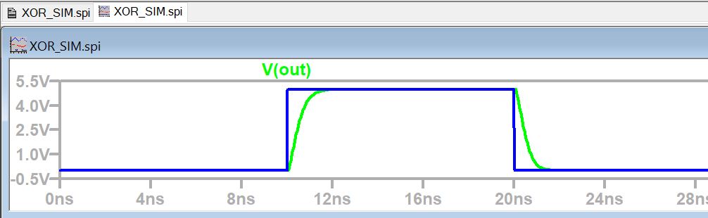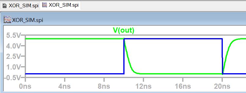 Figure 9: Simulation results for XOR gate, B pin is grounded