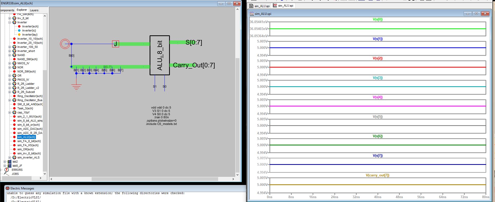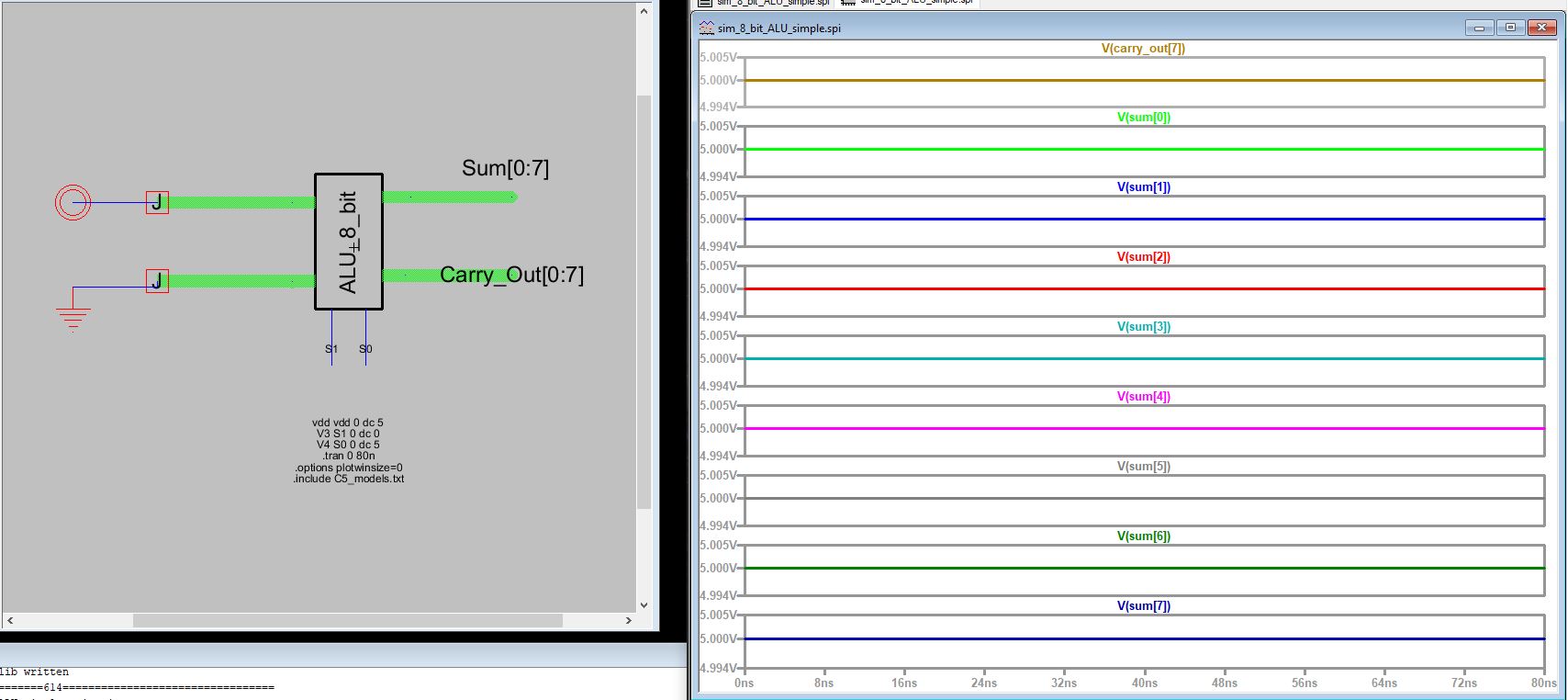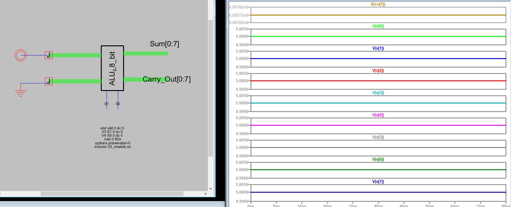 Figure 5: ALU simulation 3 S0 and S1 are 5V, output is verified correct.