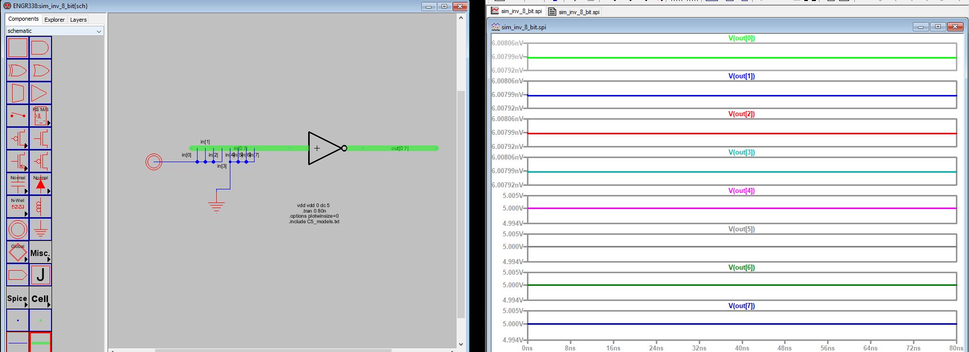 Figure 2: Simulation verification of 8 bit inverter