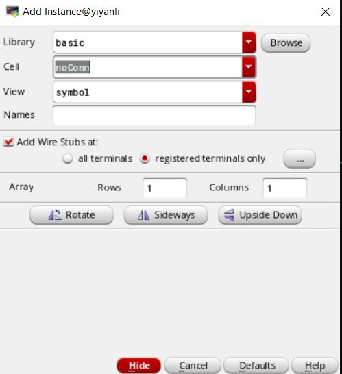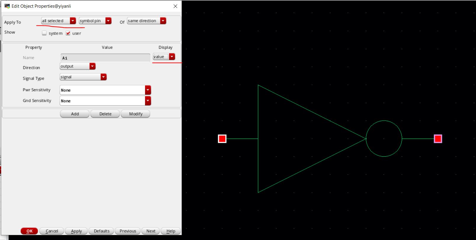 Next add pins on metal1 for gnd!, vdd! (Both have a direction of