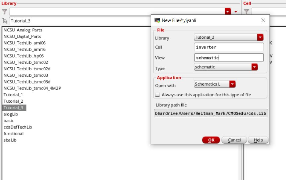 Next, in Tutorial_3 create a schematic Cell called inverter.