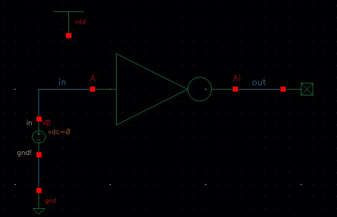 the schematic place a vdd and a gnd from the NCSU Analog Parts Library.