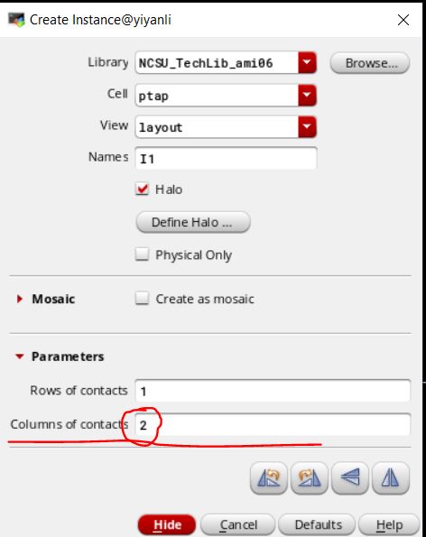 6u and the pmos has a width of 12u. The ntap and ptap will use 2