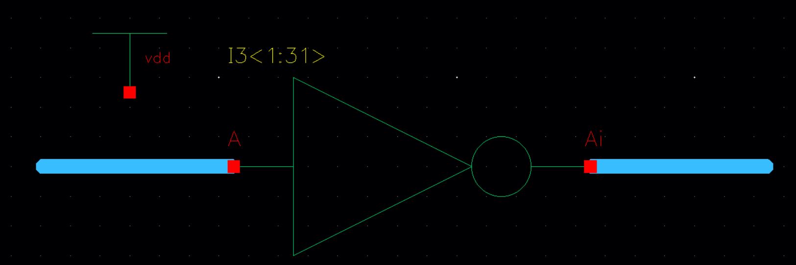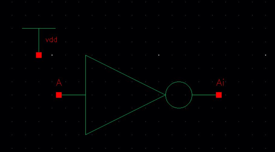 Add metal1 rectangles connecting the vdd! of the first inverter to the