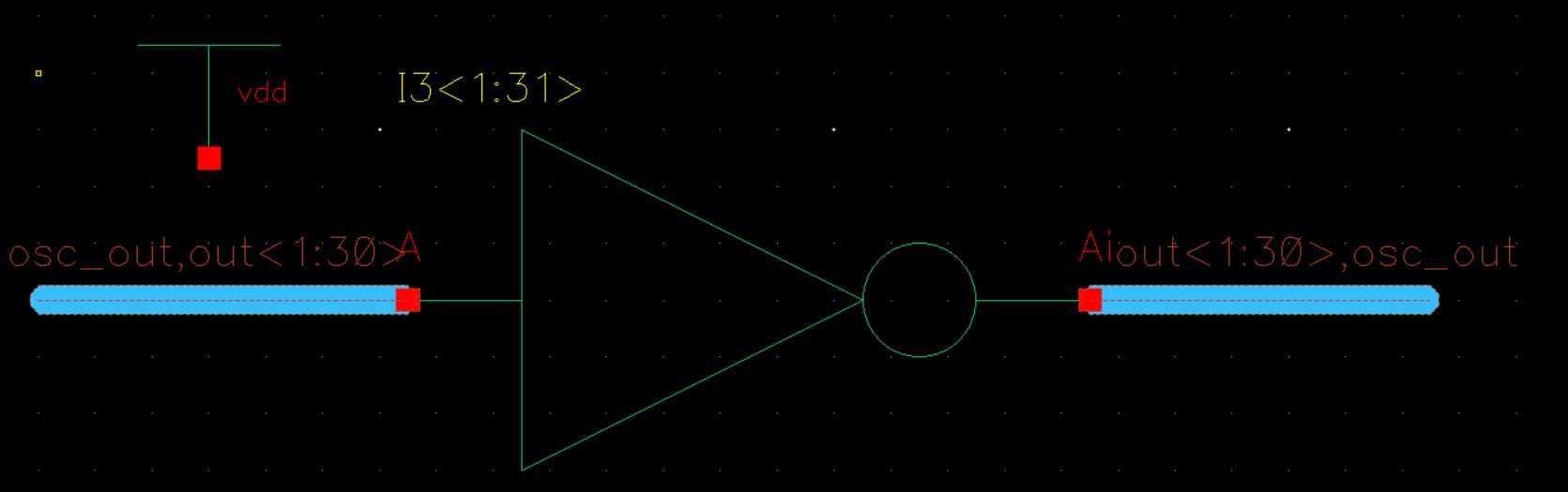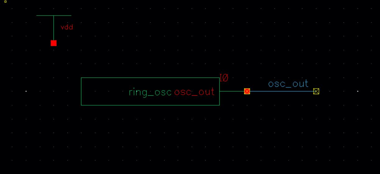 Place the ring_osc and vdd symbols in this cell. Add a wire to