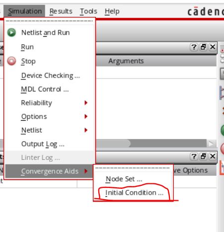 "Simulation" then to "Convergence Aids" and click on "Initial