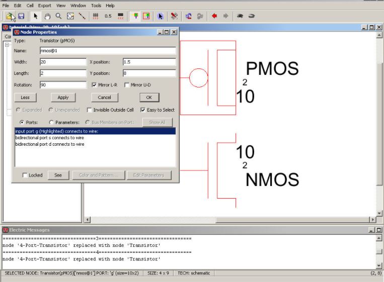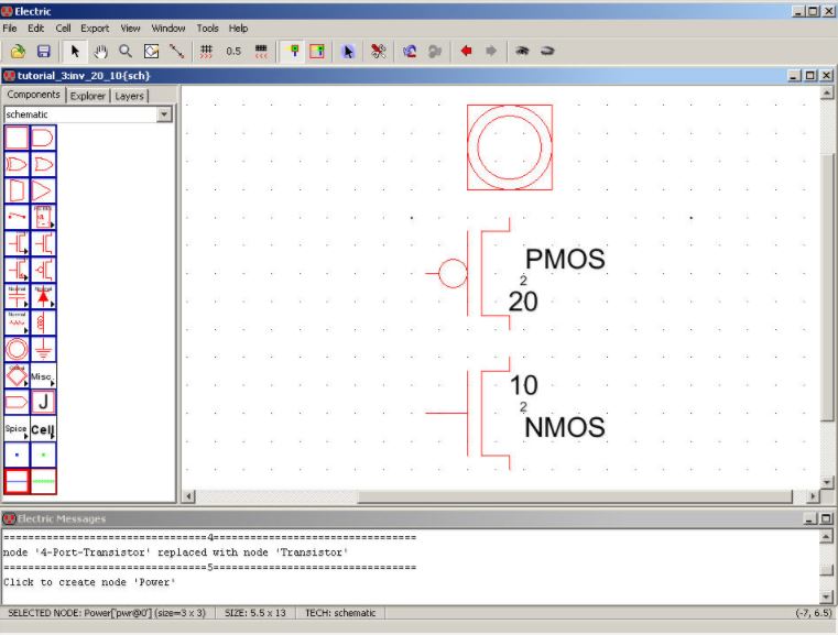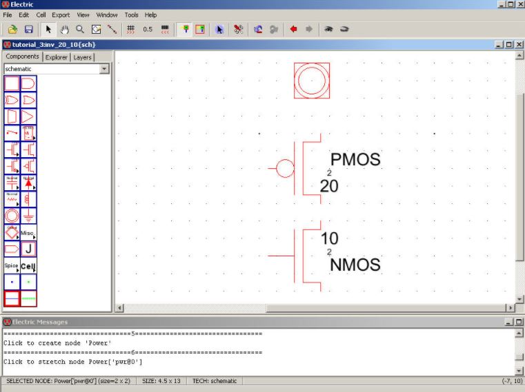 PMOS’s width to be 20 change, by editing the pMos Node’s properties, 10