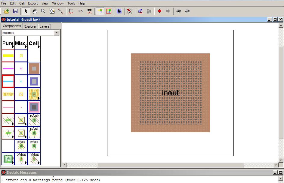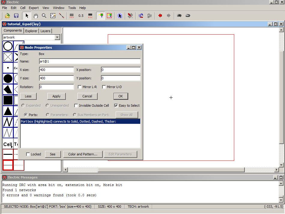 Create the layout view of a cell called “pad.” Go to the artwork menu and select/place a Box as seen below.