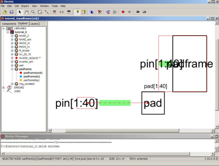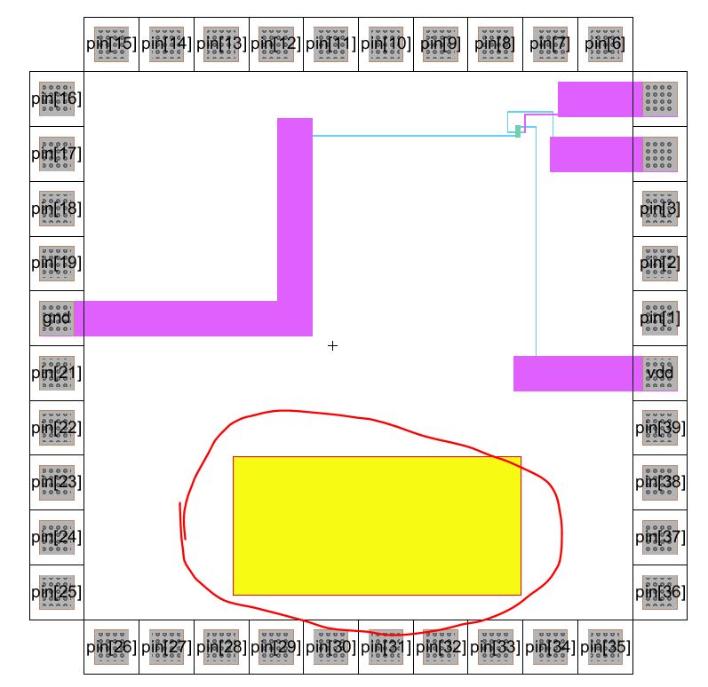 to the layout view, connect vdd and the gnd of the inverter to pin[40]