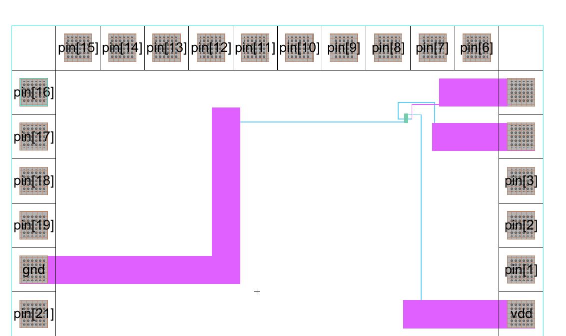 pin[5]. Notice that the blue wires are Metal 1, the violet wires are