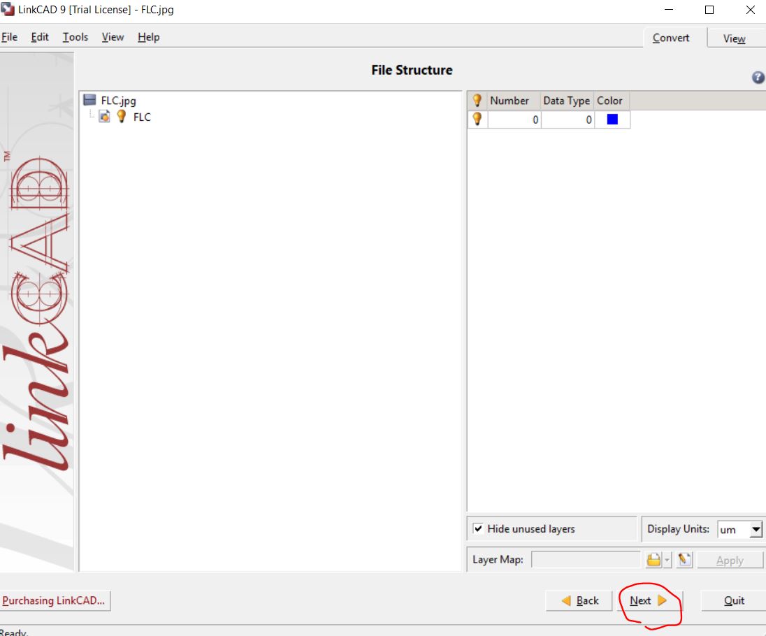 Now, let's add the FLC logo to the chip. Use 'LinkCAD' to convert a .jpg image to 'GDSII' format: Download the figure here.