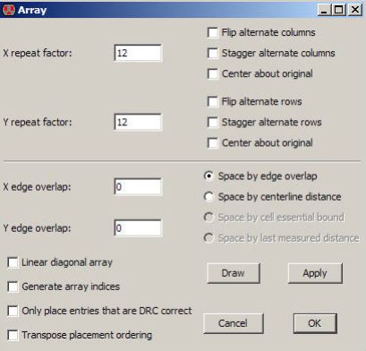 Next let’s use the Array command (Edit -> Array or simply F6) with the pad cell selected.