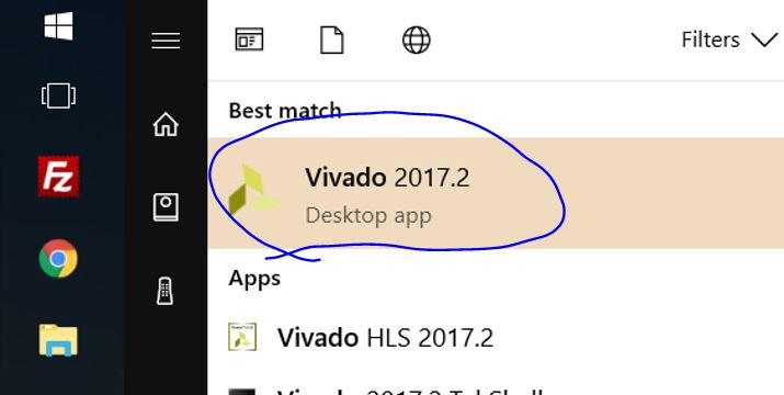 the Lab desktop. Go to C:/Xilinx/Vivado/2017.3/bin/vivado.bat and