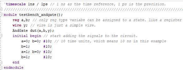 be able to know this testbench is for your AndGate. After we coded it,