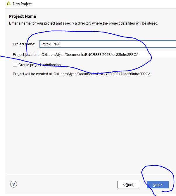 project name and the directory):