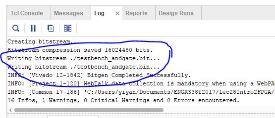 generated successfully. .bit file is used to program the FPGA from your