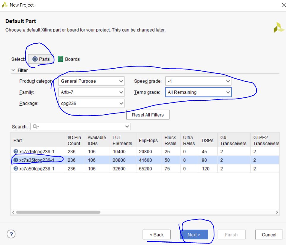 5. Select a proper chipset for your FPGA board. Our Basys 3 board has