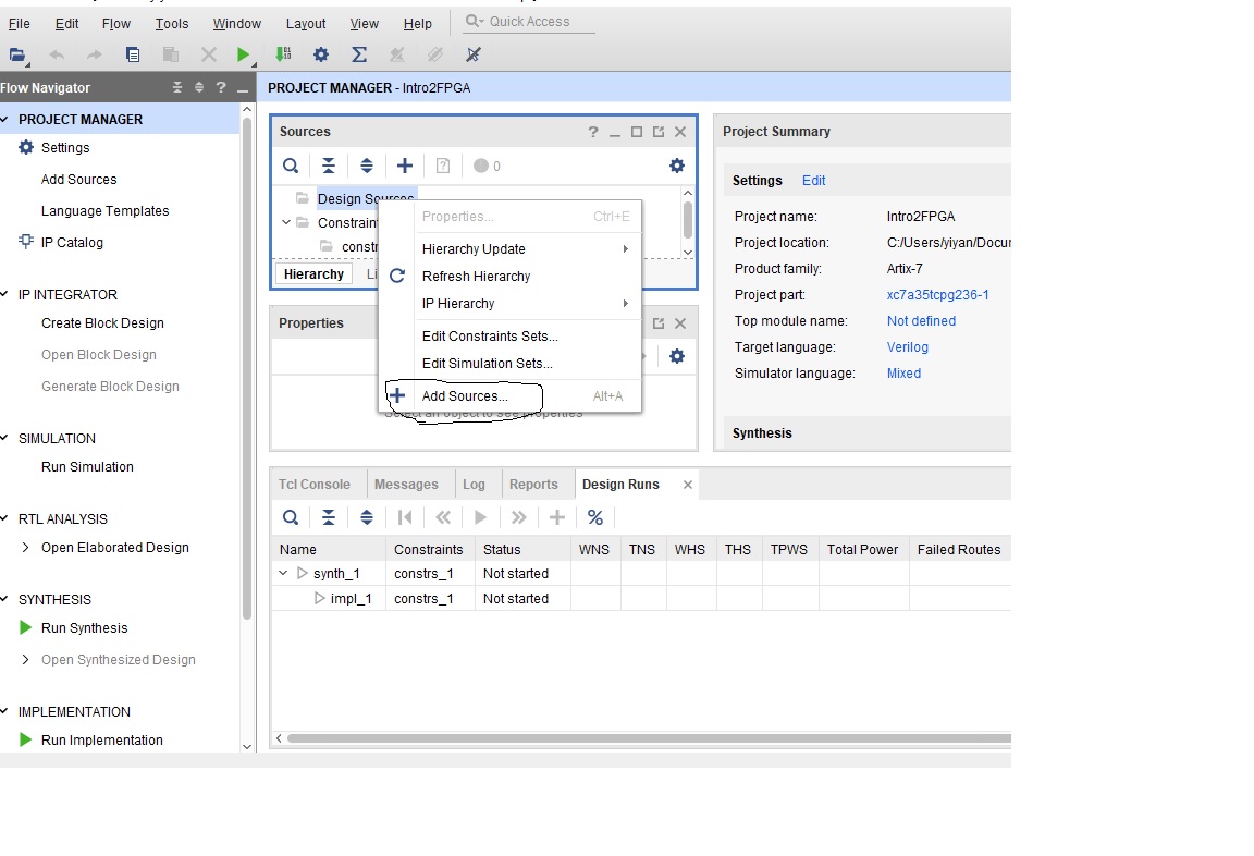 6.1. Right click 'Design Sources' in the Sources window, click 'Add