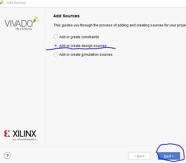 6.2 Select Add or Create design sources, and click 'Next'.