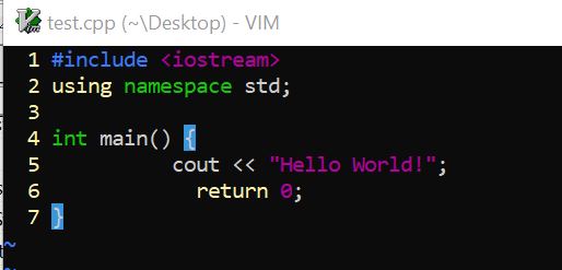 You can type your C or C++ code in vim and save it on your Desktop after this configuration.