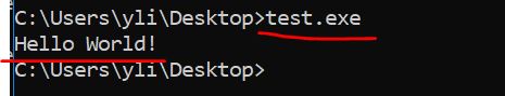 When the 'test.exe' file is ready, you can directly type the name of the exe file in the cmd widow to run it there.