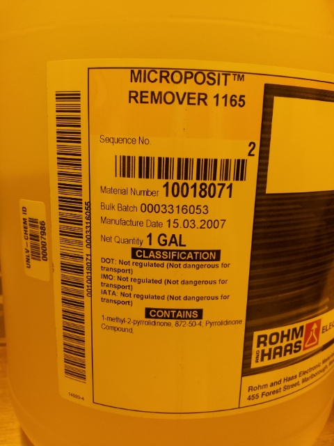 photoresist remover (Microposit Remover 1165, Rohm and Haas Electronic
