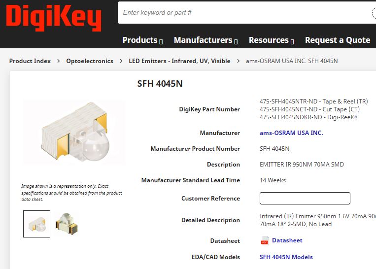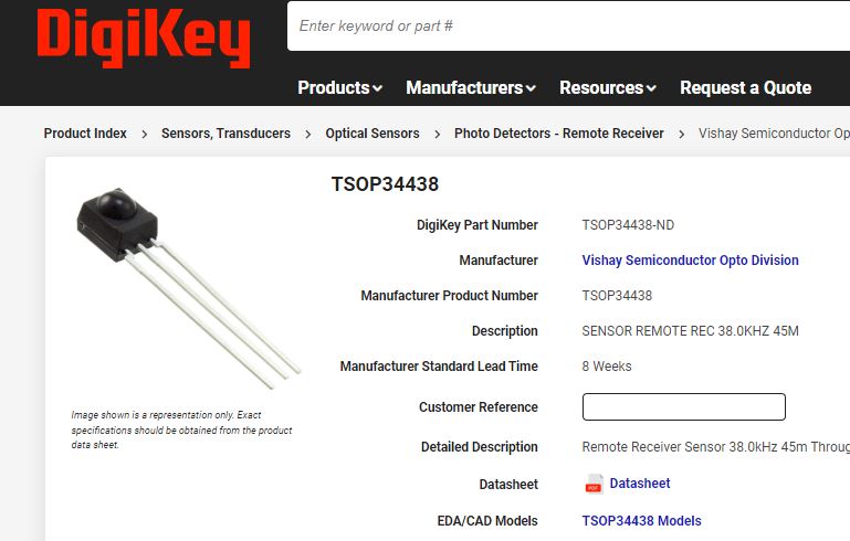 the IR receiver: GP1UW70QS,Link to the datasheet.