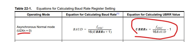following equation to assign the baud values to the 12-bit UBRRnH/L