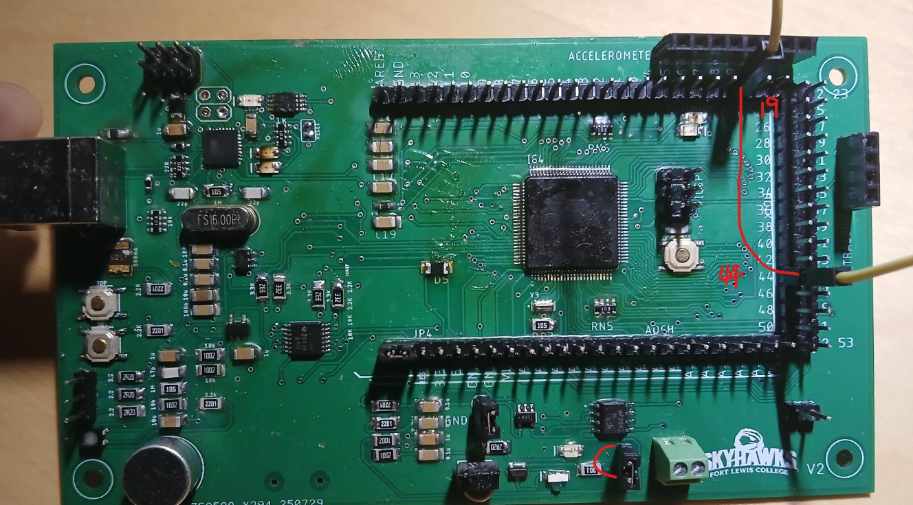 a female-female jumper wire to connect Pin 44 and Pin 19. Pin 44 is the