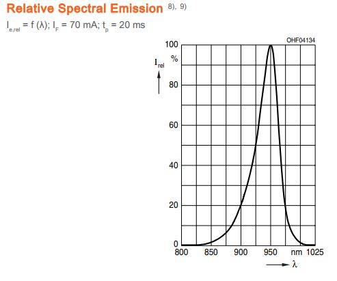 Receiving wavelength. What wavelength of light(nm) is the remote control decoder most sensitive to?