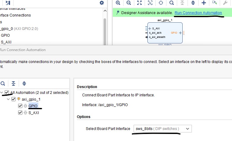 Add another AXI GPIO. The last one was for leds and this one is fow sws.
