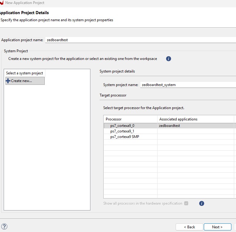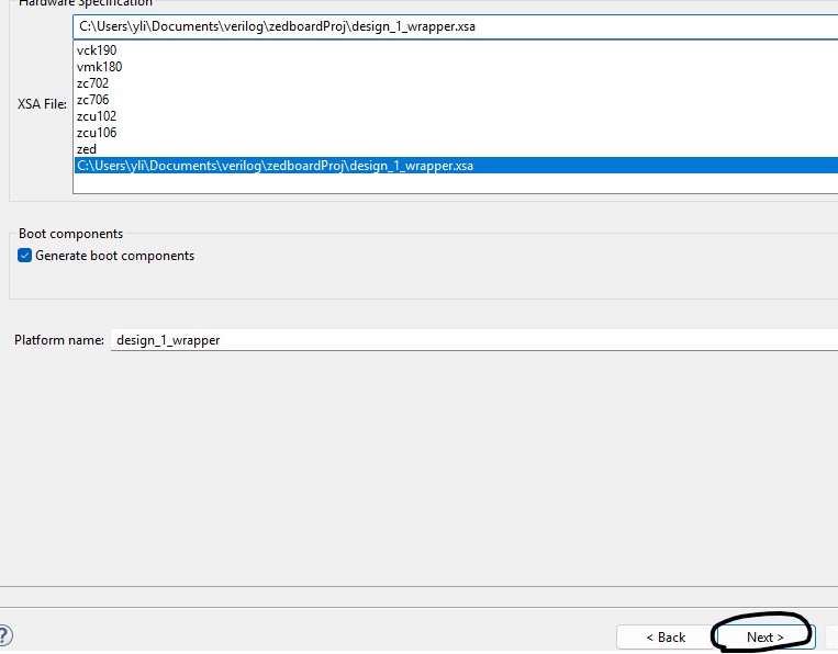 Create Application Project. Browse and add the xsa file here.