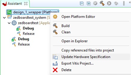 Go to Vitis, in the 'Assistant' tab, right-click the platform project