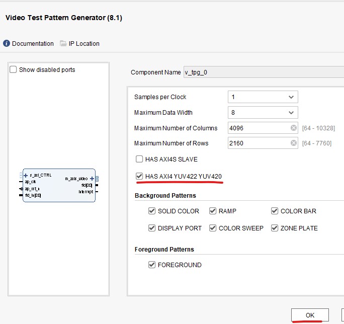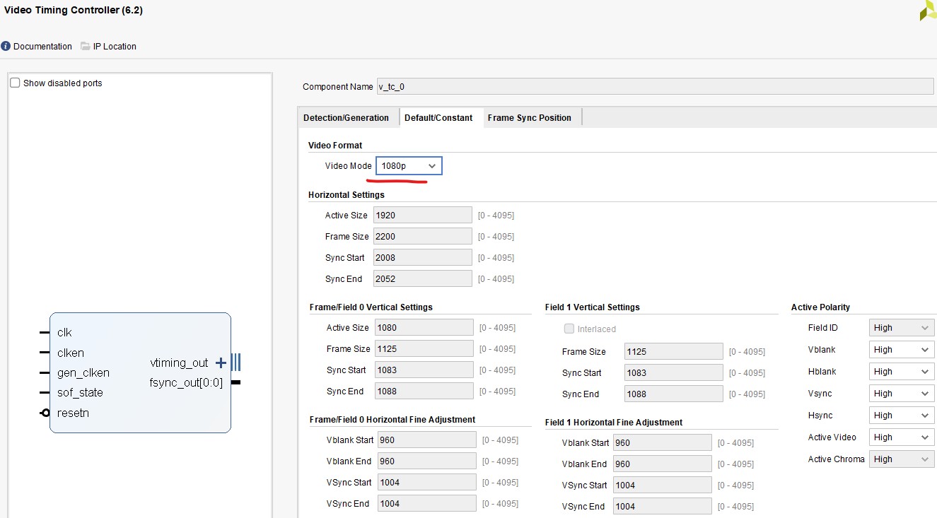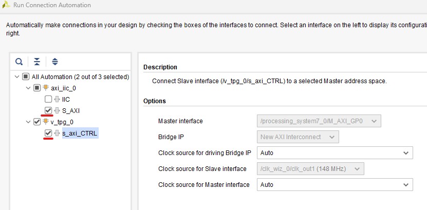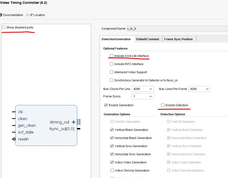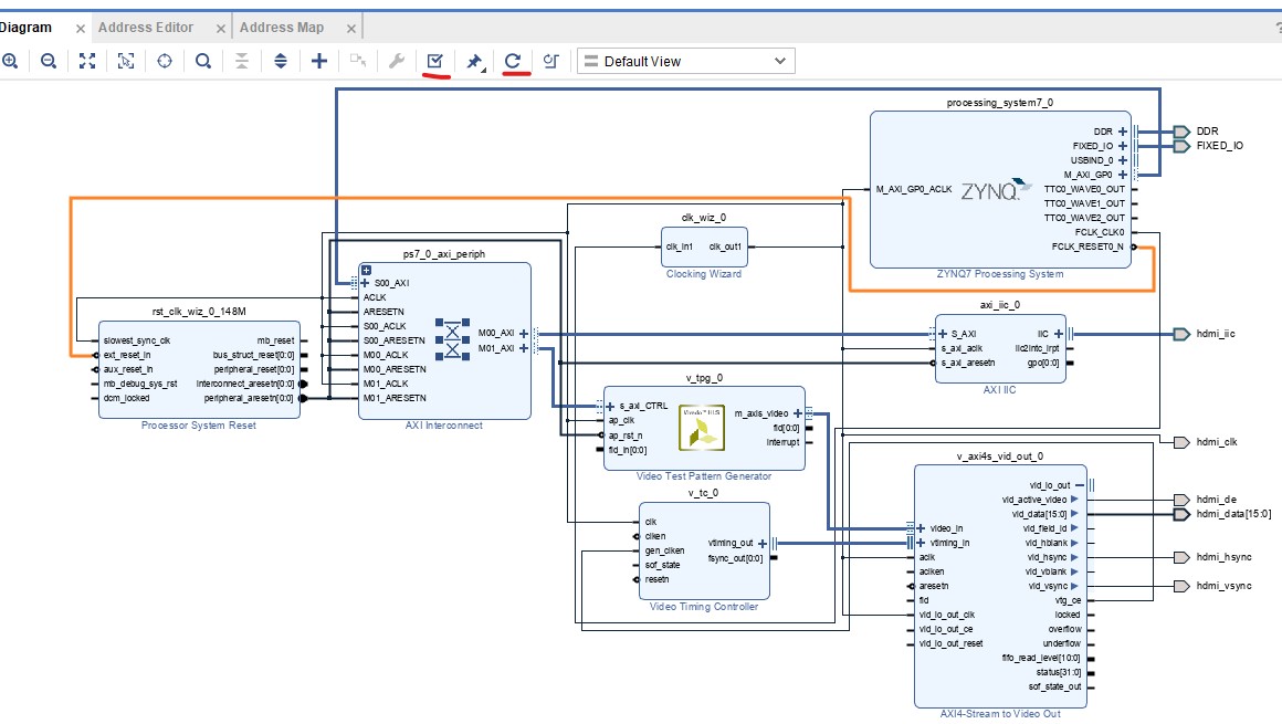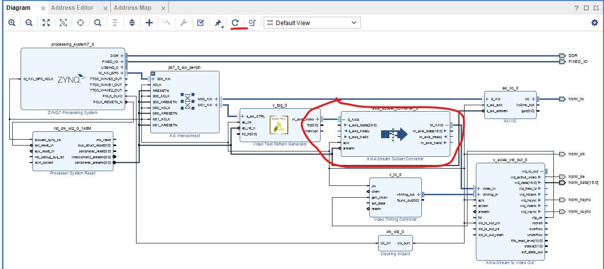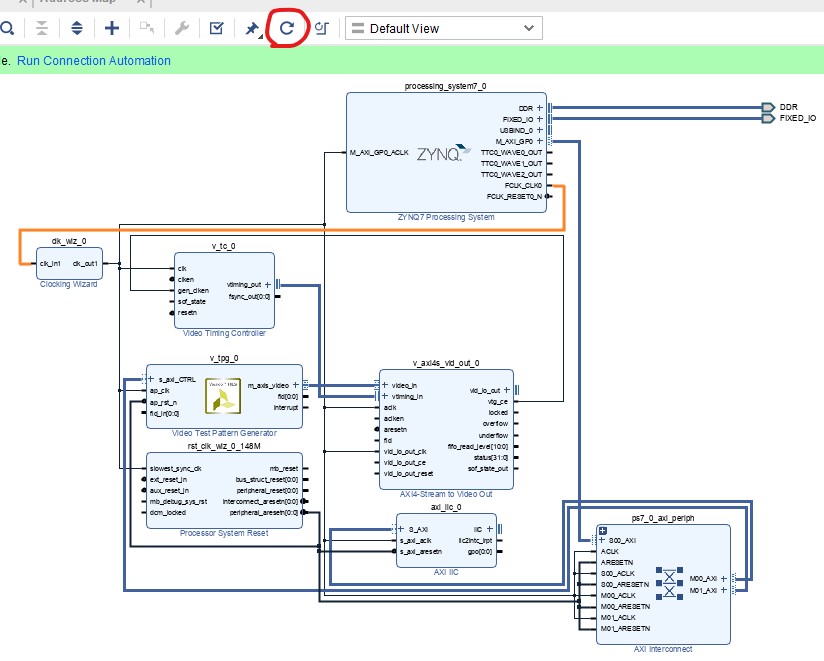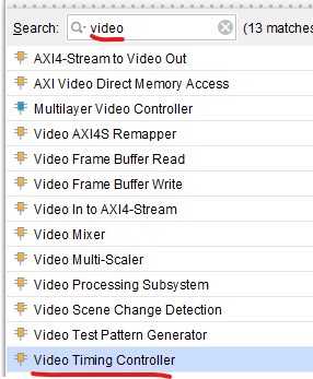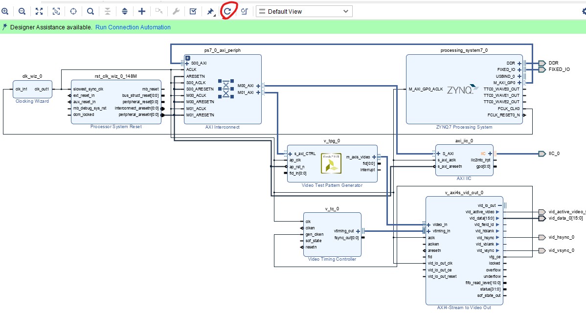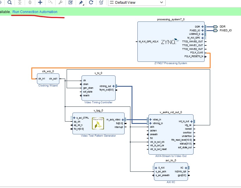 Start adding the Zynq PS, clock, video timing controller, I2C and AXIS2Video modules.