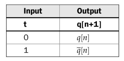 table. As can be seen in this table, the T flip-flop is, in fact, a