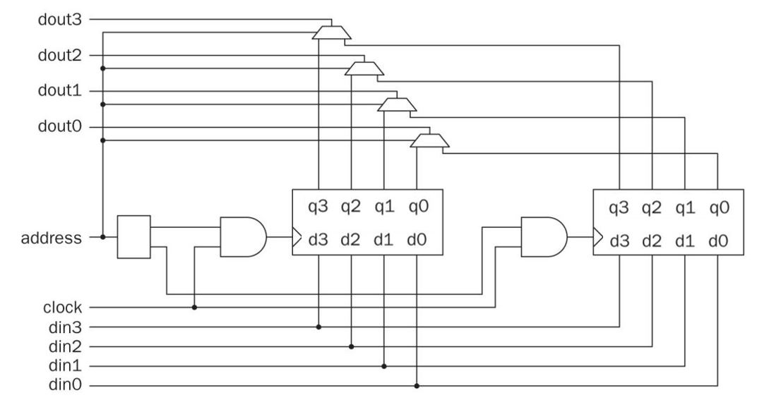 a memory depth of 4, you only need 2 bits for the address.