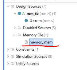 'memory.mem' as a design source. Only the '.mem' extension worked.