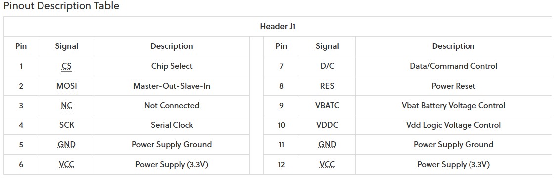 pinout table can be found below. The CS, MOSI, and SCK pins are