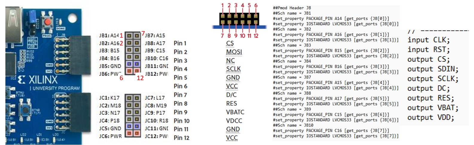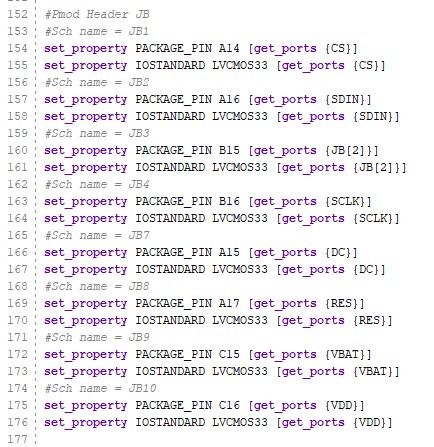 The pins of the PmodOLED is mapped to the JB pins as follows: