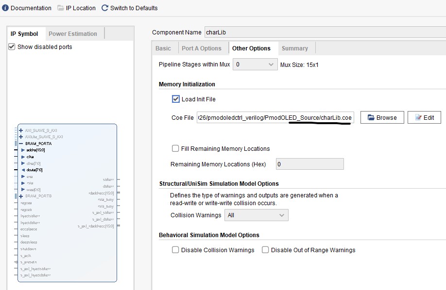 'charLib' to store the charLib.coe data. You can tell that charLib is